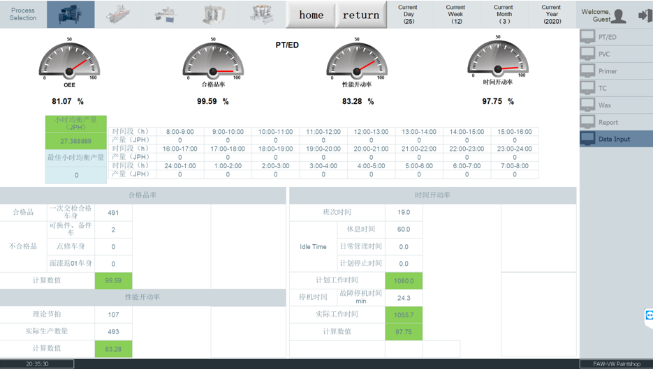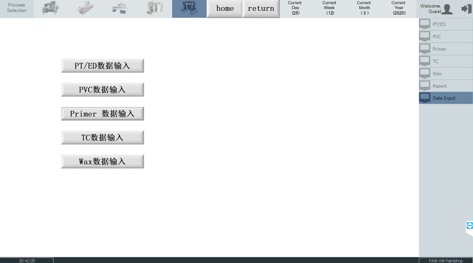 系统功能 配置底漆参数:底漆为涂装工艺中一个子工艺,对于的计算需要手工设置对应参数。 配置PVC参数:PVC为涂装工艺中一个子工艺,对于的计算需要手工设置对应参数。 配置中涂参数:中涂为涂装工艺中一个子工艺,对于的计算需要手工设置对应参数。 配置灌蜡参数:灌蜡为涂装工艺中一个子工艺,对于的计算需要手工设置对应参数。 配置灌蜡参数:灌蜡为涂装工艺中一个子工艺,对于的计算需要手工设置对应参数。 用订单号查询配方:查询某个编号的配方是否存在。 实时采集生产过程数据:对需要参与运算的多个生产过程进行实时采集,生产数据来自MES系统。 计算:利用配置参数和生产过程数据计算每天的值。 数据查询:查询指定日期内的数据 数据报表:导出指定日期内的报表。 |
